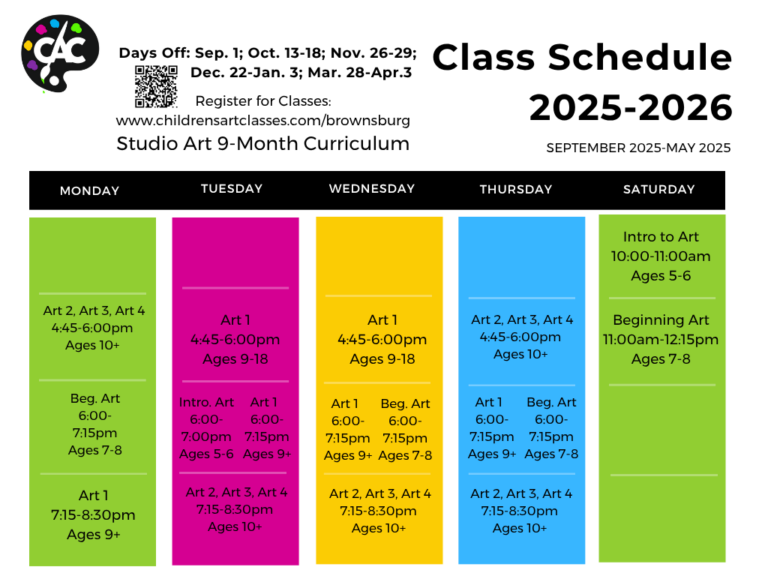 - Art 1 (First Year Students at CAC – Must be 9 Years Old or Older)
